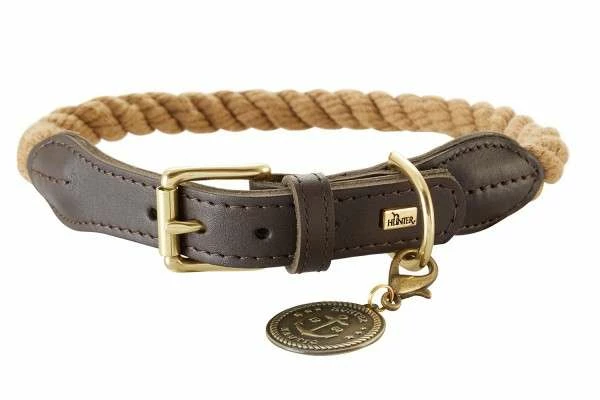 Tau mit Messingbeschlägen und abnehmbarer Plakette. Hundehalsband 12mm breit.