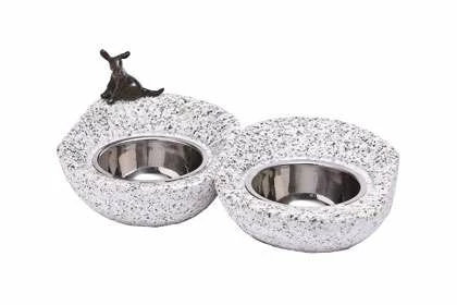 Hochwertiger Futternapf aus Granitstein und Bronze. Es handelt sich bei diesen Futternäpfen um handgefertigte Unikate, da natürlich jeder Stein sein eigenes Design hat. Daher kann der Futternapf etwas vom Bild abweichen. Die Futternäpfe sind standfest.