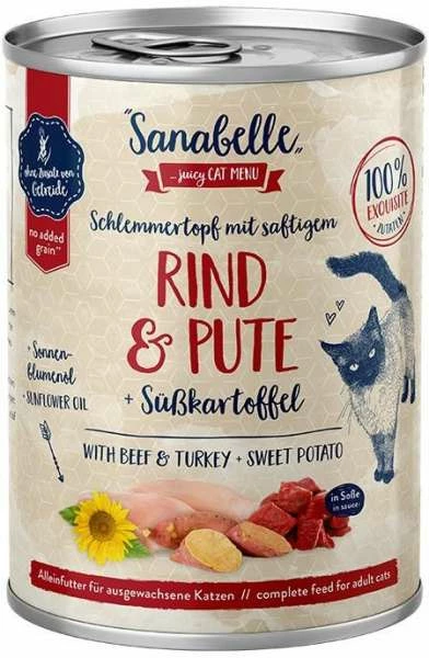 | 30 % frische Pute, 27 % Putenbrühe, 14 % frisches Rind, 9 % frische Lunge, 6 % frische Entenhälse, 5 % frisches Herz, 4 % Süßkartoffeln, 3 % frische Leber, 1 % Mineralstoffe, 1 % Sonnenblumenöl |