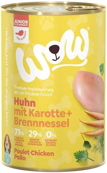 WOW JUNIOR | Mit Huhn, Karotte & Brennnessel | 6x Hundefutter